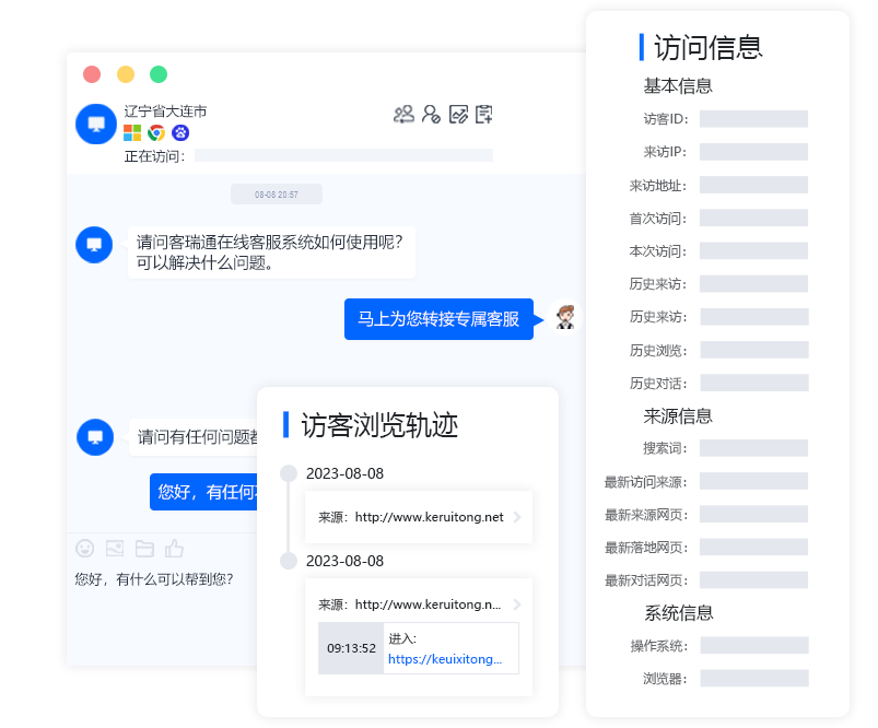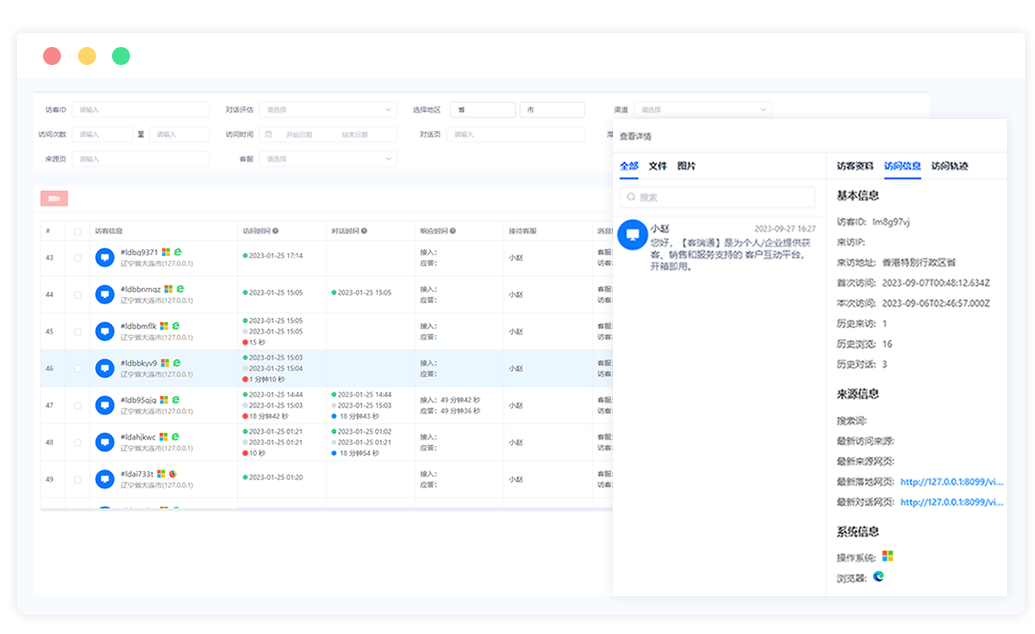 帮助个人、企业分析客户价值,客服可以完善访客信息 进行相关访客备注。